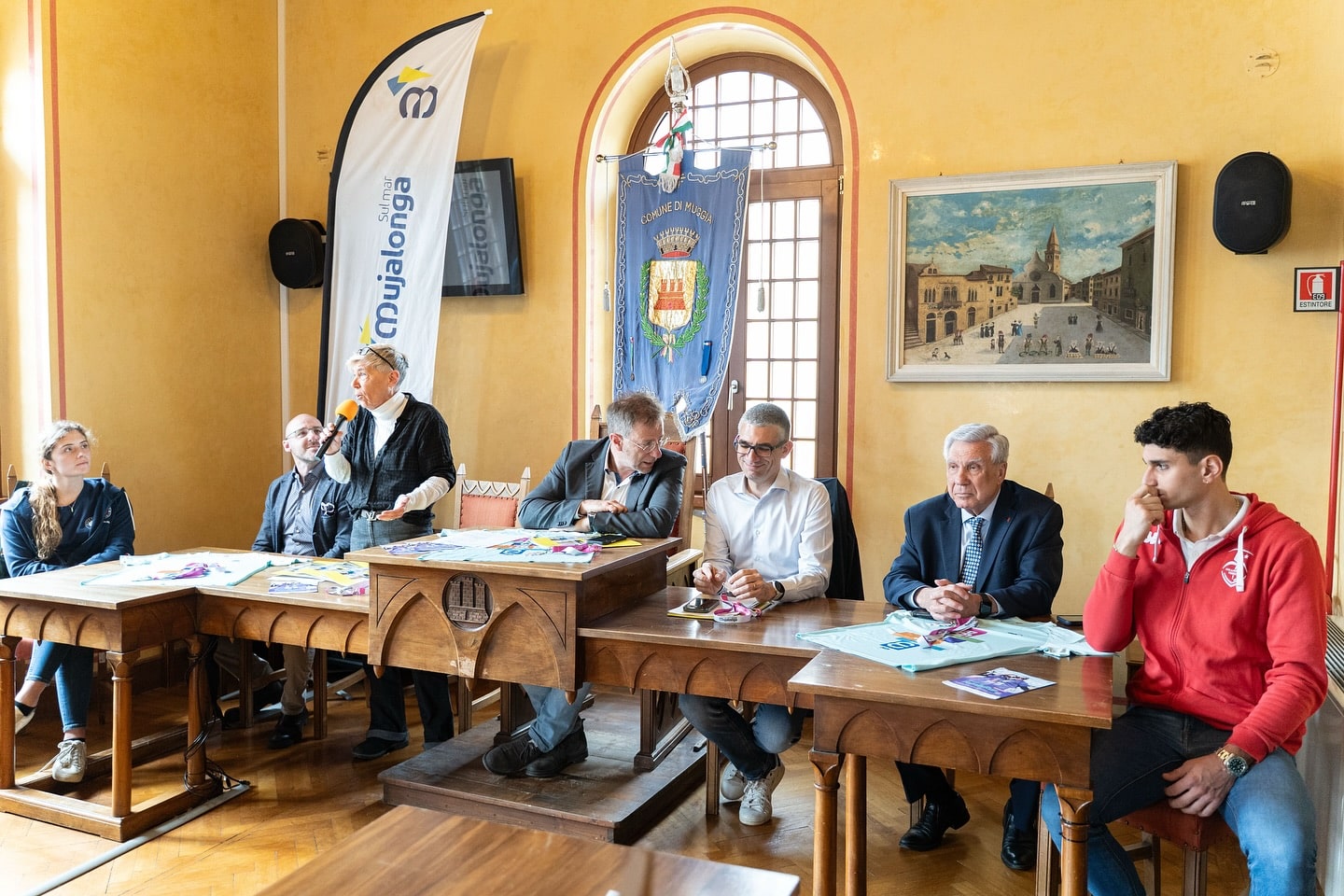 Ad aprire il novero degli interventi e fare gli onori di casa c’era il Sindaco del Comune di Muggia Paolo Polidori che ha voluto sottolineare come la Mujalonga sia diventata un evento tradizionale per tutta la cittadinanza: “Stiamo parlando di una manifestazione ormai consolidata e capace ogni anno di aggiungere interessanti novità in grado di arricchire ancor di più una formula vincente in cui la nostra amministrazione gioca, con molto entusiasmo e professionalità, un ruolo di primo piano. Uno degli elementi che rendono la Mujalonga un appuntamento organizzato senza lasciare nulla al caso è sicuramente il grande lavoro di squadra che c’è alle spalle”. Sulla scia del Sindaco si è inserita l’Assessore alle Sport del Comune rivierasco Alessandra Orlando che ha rimarcato come: “Nella due giorni della Mujalonga possono scendere in strada tutte le fasce della società e nessuno viene escluso. Lo sport e in questo caso la corsa diventano strumento di dialogo intergenerazionale sublimato dallo spettacolo e dall’energia contagiosa della Mini Muja, una mattina unica nel suo genere con il futuro della nostra società, le bambine e i bambini, che si divertono e corrono nella piazza centrale di Muggia, Piazza Marconi”.