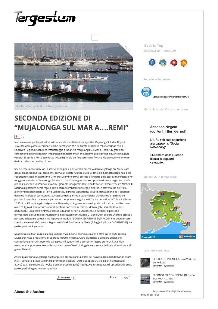 Tergestum 10.4.2014 – Seconda edizione Mujalonga sul Mar….a remi